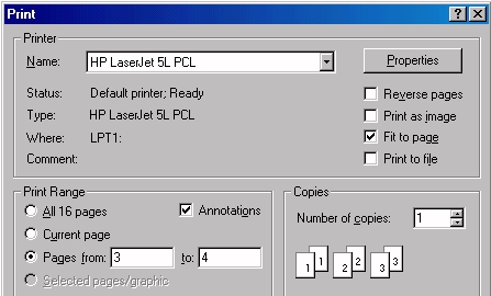 Select the required pages for printing, then click OK. It is not wise to print more than 5 pages at a time with a PDF file.