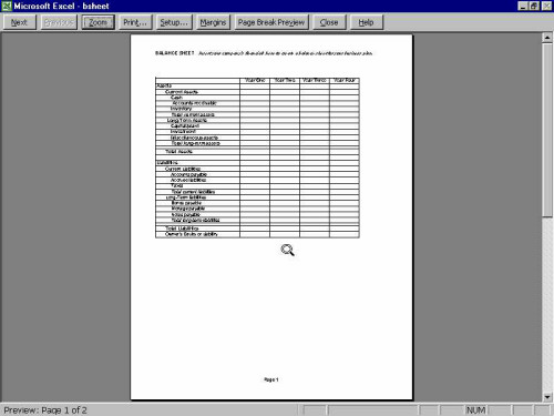 ![]() Click on File Click on Print Preview or Click on the Print Preview icon The following page typically appears: