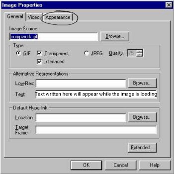 You can insert images of the gif or jpg format into your web page. Keep in mind that you need to keep your images relatively small in size, otherwise, your pages will take a long time to download. See the tip sheets on Paintshop Pro for help on this. Size - use a graphics programme to re-size images. Alignment