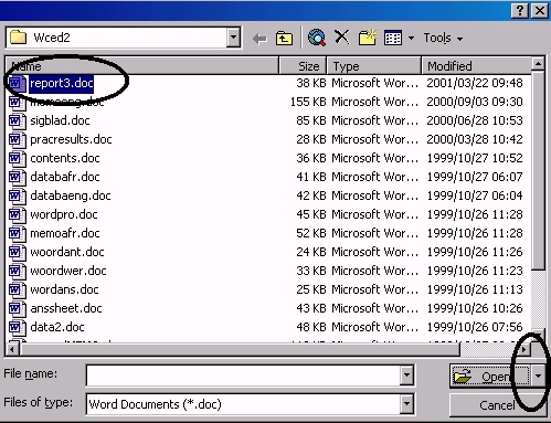 Select the file to Open (see below). Notice that when the file is selected the Open button has a little arrow pointing down (circled below).