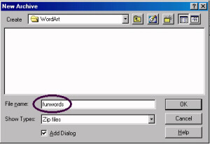 | For this example we will zip files in the WordArt folder on the C: drive. You would not necessarily use the WordArt