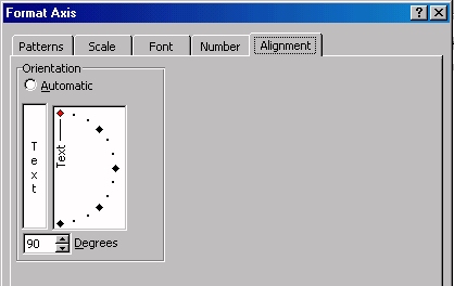 To change the alignment of the labels, activate the graph by double clicking it. Click on the Category axis until blocks appear (circled below).