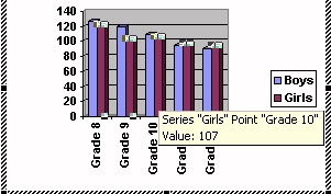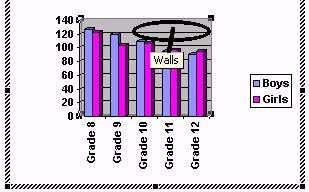 The best way to learn graphing with Word is to experiment with graphing. The meaning of graphs can be enhanced with legends or labels and formatting such as types of graphs, alignment of labels, meaningful colour of columns, background colours and by adding a border. To add legends (labels) click on Chart, then Options.